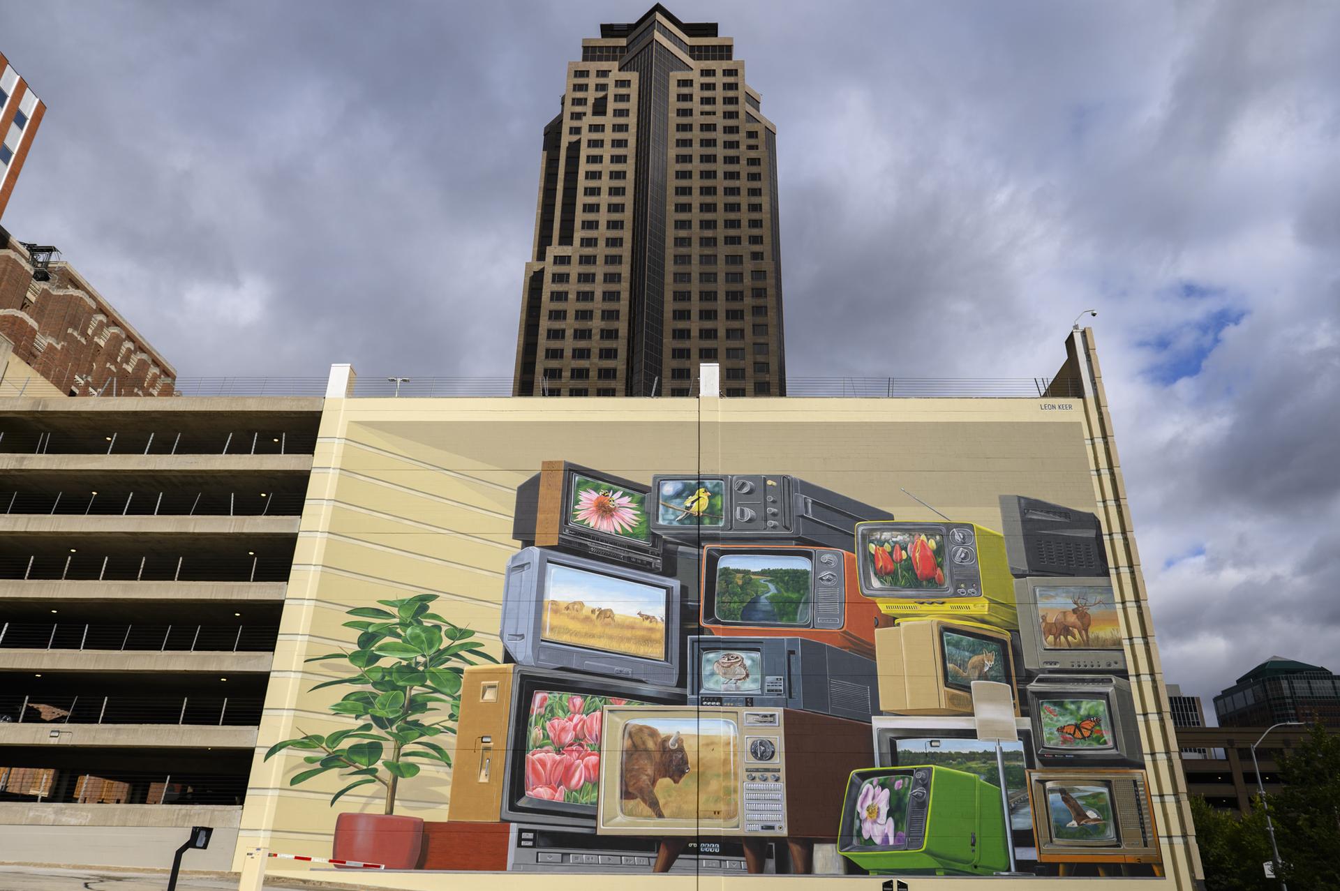 “When we thought of ways of incorporating technology, Leon’s work was right at the forefront of my mind,” foundation director Alexa McCarthy said. “It’s the first in what we hope will be a series of murals that are part of an AR strategy for the city of Des Moines.”