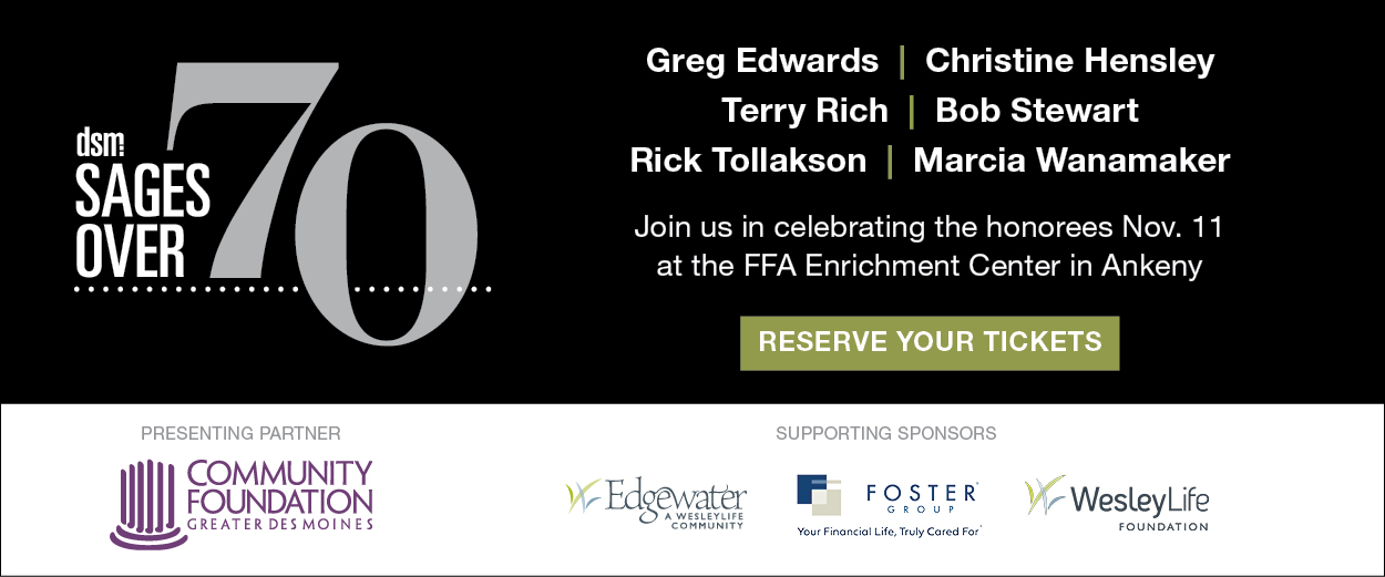 Des Moines Tweed Ride, Nov. 9. Don your old-time duds and grab your oldest bicycle for a leisurely Sunday ride around downtown, with a few pub stops along the way.